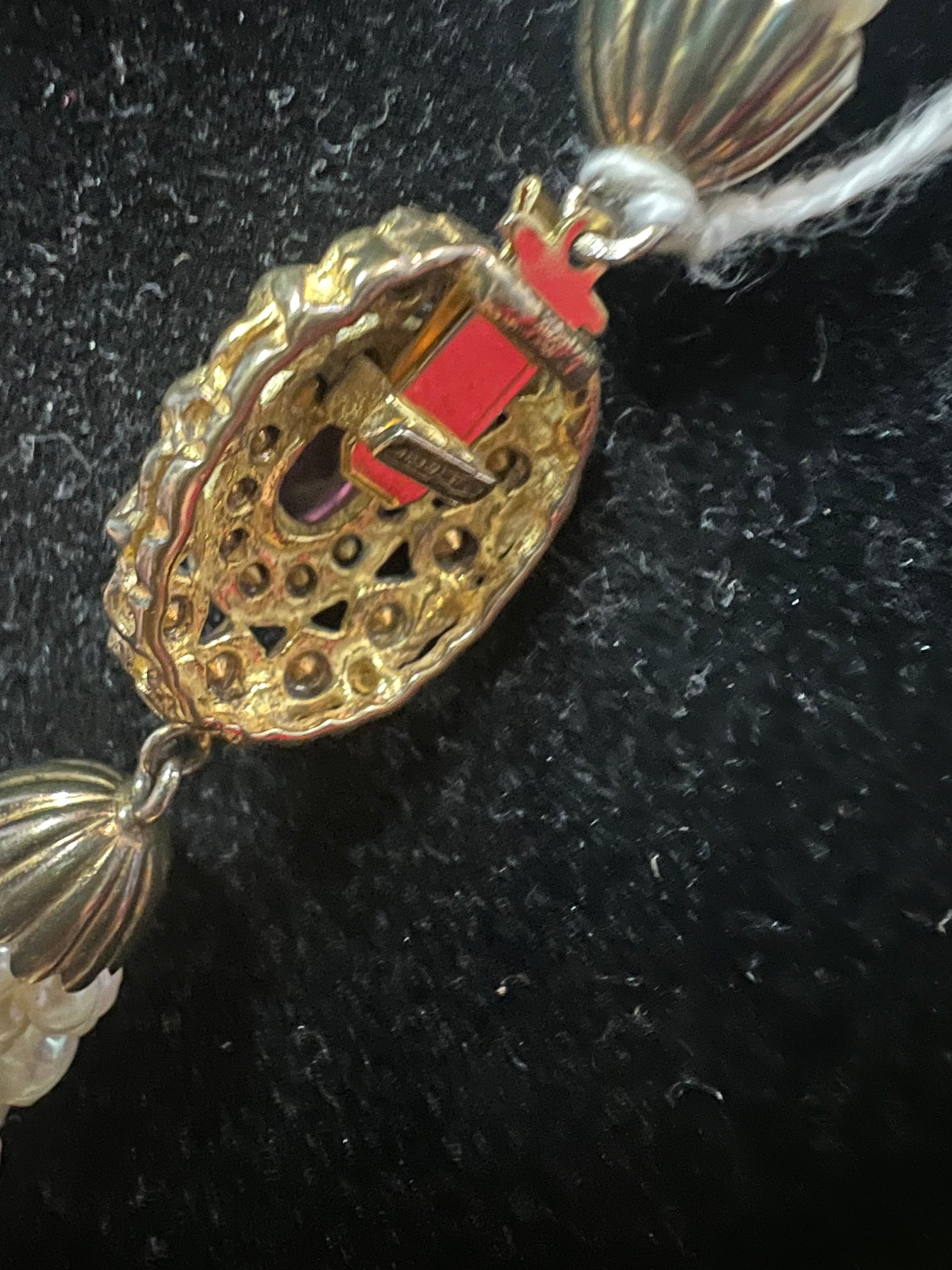 COLLIER IN PERLE DI FIUME CON FERMATURA IN ARGENTO PIETRA DURA E BRILLANTINI CON TAGLIO SWAROVSKY