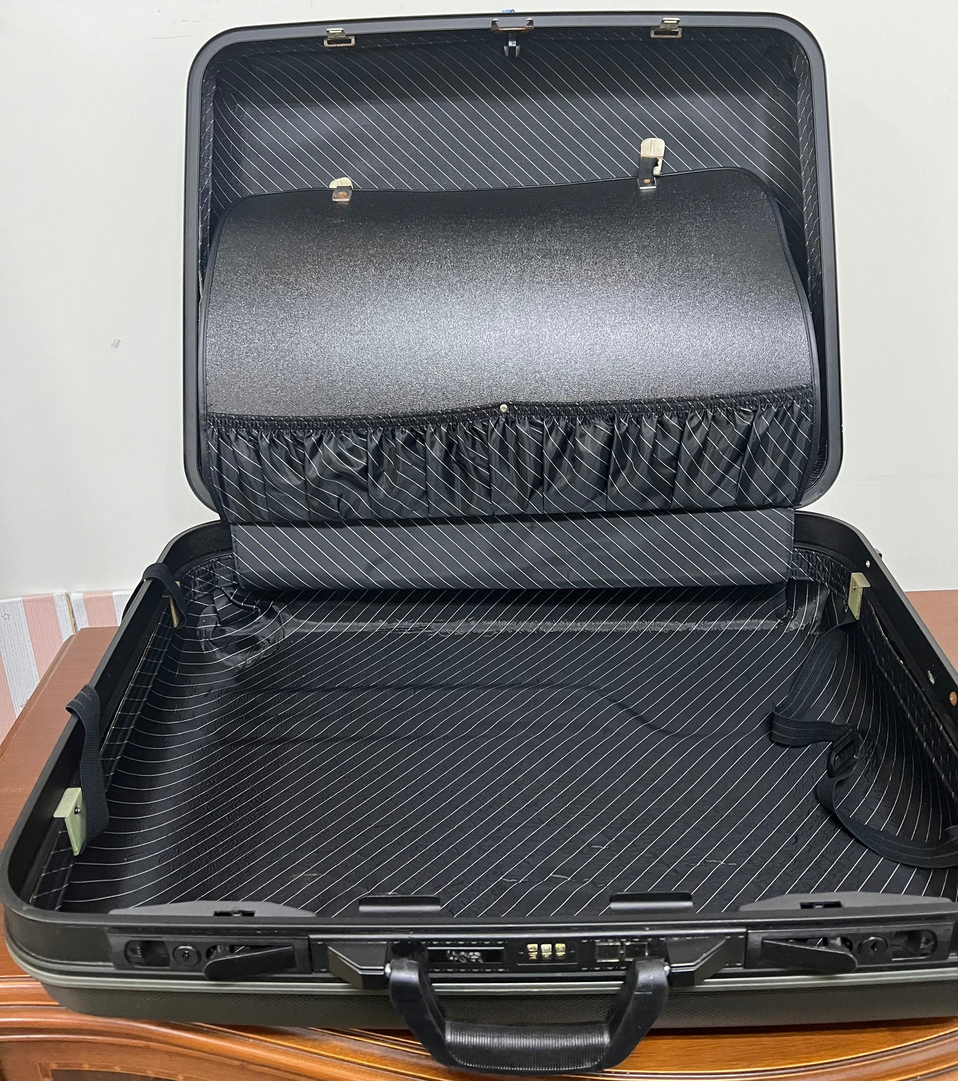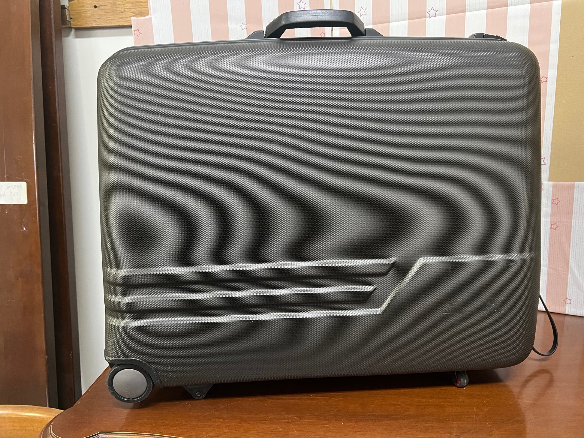 LA VALIGIA E' DOTATA DI RUOTE E MANIGLIA PER IUN FACILE TRASPORTO SI PRESENTA IN BUONE CONDIZIONE